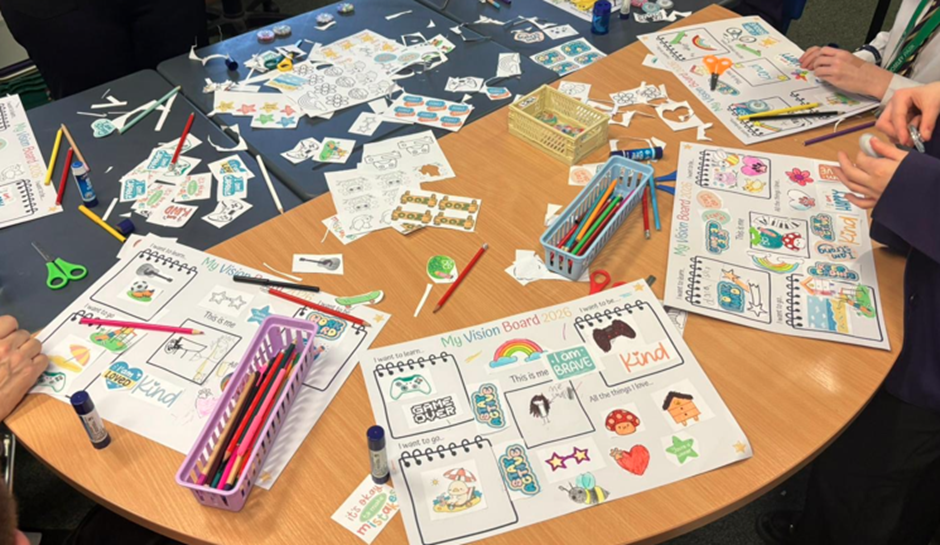The session opened up thoughts and conversations about what the children learn, where they want to go in the future, what they love to do and who they want to be. Please see pictures of our students spending time creating their mood boards.
